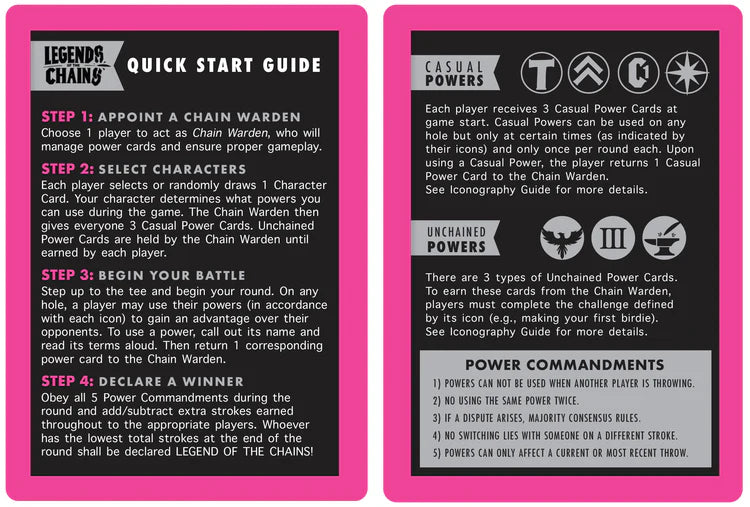 Velg én spiller som skal være Chain Warden. Denne personen har ansvar for å håndtere power-kortene og sørge for at spillet gjennomføres riktig gjennom hele disc golf-runden.